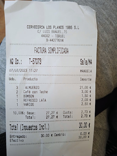 Read moreSiendo cliente habitual siento decir que estoy muy descontento. No volveré. Se equivocan en el bocadillo....puede ser error humano...y lo acepté . Se le comenta a la chica y dice que ella no se equivoca. Se revisa pedido y exactamente estaba mal (error de camarera). A la hora de ir a cobrar en la carta pone almuerzo bocadillo entero (7€ incluye bebida #caña, vino o agua y café) luego te lo cobran aparte. Se da su queja correspondiente. Se va la camarera y dice que en vaquillas son esos precios. Es una estafa no pueden poner precios y luego cobrar lo que quieran. Lo siento pero no volveré y el dueño es muy trabajador pero sus...
