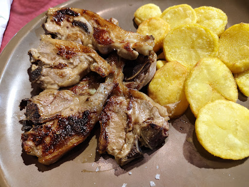 Tampoco falta el jamón de Teruel como opción de primero y como no las migas. Bastante variedad de platos, donde las hubo de todos los colores, platos sencillos y sin gracia y otros más elaborados. Destacaron los segundos de carne, con unas sabrosas costillas de cerdo asadas y un tierno entrecot de ternera. De postres tartas industriales a excepción de la de queso que no ofrecieron y natillas también casera que si probamos.
