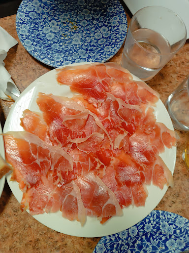 Está claro que aquí hay mucha gente que le pone 5 porque en su mayoría serán del lugar y ya conocen sus puntos fuertes pero gente de fuera advierto que puede salir malparada del sitio. Busquen otro. El género que probamos había algo de calidad, también posibilidad de platos sin gluten, buenas patatas bravas y torreznos. No recomiendo el jamón serrano. No sé dónde estaba ese camarero tan servicial que dicen, pero para mí que ese día estaba de vacaciones. Una camarera para barra y mesas, servicio lento (como es lógico) y cocina lenta de hecho tuvimos que cancelar algún pedido para no alargar más la agonía. No están preparados para atender a todo el personal y eso que no estaba a tope. Se echó de menos sugerencias de la camarera por lo que perdimos oportunidad de degustar entrantes. Tapeo caro para lo que es, no sales con la sensación de haber comido bien, mucha fama y resultado pobre. No recomendable para el que venga a...