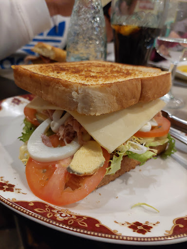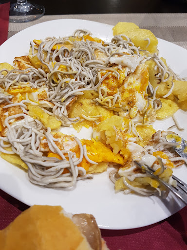 Hemos desayunado hoy, una torrija muy buena, una tostada y café todo bueno y barato. Hemos vuelto a cenar algo, estaba a tope de gente , la verdad que pensé que nos no iban a atender, pero si, nos sirvieron bastante pronto a pesar del follón. Dos cervezas ,un costillar con salsa barbacoa con patatas fritas de las de verdad y dos vinos de Somontano, 16,20 buen precio. Los platos que veíamos pasar con muy buena pinta. El costillar, tierno y jugoso. Muy...