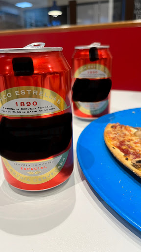 Cuando me trajeron la pizza a la mesa estaba recién sacada del horno, tanto que hay que esperar 2-3 minutos antes de tomarla porque quema. La calidad de la comida imperial, sin escasear en ingredientes, redonda sin el borde deformado, la cantidad de queso exacta. Como las hacen aquí no las hacen en ningún otra pizzería de la ciudad. La bebida que te sirves en la máquina está fría, no necesitas añadir hielo.