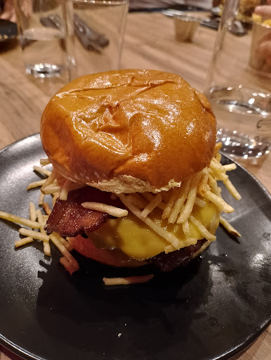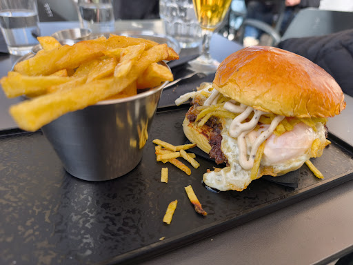 Read moreHamburguesería con opciones tanto de entrantes, perritos hamburguesas de medallón con carne madurada y Smash. El local es grande y el personal que nos atendió fue rápido y amable. Los precios son moderados altos teniendo en cuenta que las patatas se pagan aparte (1,5€). Nosotros probamos: -5 tequeños (7,5€): bien de sabor y bien de precio, recomendables -Hamburguesa pulled (14€): la que más nos gustó, tanto por el pan como la combinación de ingredientes. Si bien es cierto que la salsa barbacoa del pulled pork se lleva mucho el protagonismo de la carne, la combinación nos pareció muy buena y el pulled pork sabroso y para nada seco -Hamburguesa taki taki (16,5€): una opción pensada para jugar con el contraste dulce salado picante. En nuestro caso la salsa emmy y los takis, aparte del precio, no nos acabaron de convencer. La berlina a pesar de ser un donut no estaba excesivamente dulce lo cual se agradece En cuanto a la carne, no preguntan el punto pero en nuestro caso nos la sacaron al punto menos(como debe de ser). El sabor de maduración es bajo pero lo que no nos acabó de convencer fue la picada, demasiado gruesa por lo que se queda un poco más dura y prensada y menos suelta, por lo que se hace un poco difícil de morder(por este tipo de picada recomendable no pedirla muy hecha porque sino estará incomible) En líneas generales buena opción de hamburguesas en Teruel(de las que hemos probado en la ciudad la que más nos ha gustado por calidad) que a mi parecer merece más de las cuatro estrellas que tiene ahora; quizás no las 5 porque los precios son 1-2 euros más elevados de lo que está el mercado de hamburguesas actual, pero aun así sigue siendo...