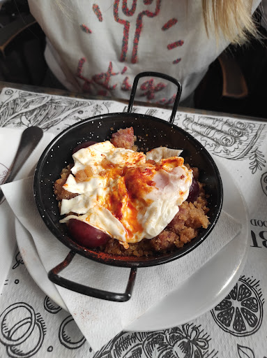 Sitio bonito, caracterizado un poco como el lejano oeste y con música de los años 80. Un servicio rápido y cercano, con un camarero que, o lo amas, o lo odias (en mi caso me cayó en gracia, pero a mis compañeros no). Me parece muy curioso como en toda Teruel, la mayoría de sitios se rigen por Menú del día, cosa que en Murcia, que yo tenga entendido, no es tan común, pero vaya, a mí me encanta, eso sí, que haya que pagar un extra por algunos productos del menú me parece AVERGONZANTE Para comenzar, de primero pedí una caldereta de cordero que, a mi pesar, tenía una pinta horrible, pero no tenía mal sabor, simplemente Disonancia Cognitiva. Mis amigos pidieron Arroz a la Cubana (presentación muy infantil) y ensalada. De segundos encontramos mi sepia con ensalada y salsa de ajo y perejil +aceite que sinceramente, estaba espectacular, fantástica. Por otro lado, tmb probamos el secreto con salsa de queso, otro pescadero y un buen osobuco, todo bastante bueno. Para finalizar, los postres fueron más duro ya que el Brownie con chocolate caliente y sorbete de limón no combinaban muy bien y no me lo terminé y la tarta de queso tmp era un 10.