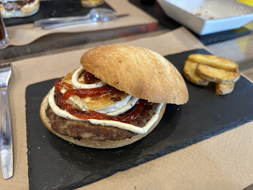 Read moreFácil para aparcar su interior muy acogedor una pena que el tiempo no acompañara para comer en su terraza. El trato de los camareros genial, pedimos dos amburguesas cabronas ( buenísimas ), las bravas con tres salsas también muy buenas no le pongo un pero a nada. Seguramente volvamos. Edito reseña porque volvimos a ir el pasado sábado 20 de julio. El restaurante estaría al 60% siendo generosos por lo tanto había más de 10 mesas libres, íbamos dos adultos y un niño, tras varios minutos esperando en la barra a ser atendidos y viendo como pasaban de nosotros decidimos sentarnos, al instante nos atiende un camarero para tomarnos nota y le decimos que nos traiga la carta, a lo que nos contesta que la cocina anda hasta arriba y por ahora no podría atendernos qué QUIZÁS más tarde….. tras esto nos levantamos y nos fuimos. La cuestión es que la cocina estaba hasta arriba de trabajo y el local aún tenía más de 10 mesas disponibles ?? Y había mesas vacías de hasta 8/10 comensales. En fin era la tercera vez que íbamos la primera estuvo muy bien pero la segunda vez ya se notaba poca gente trabajando y el pasado sábado lo...