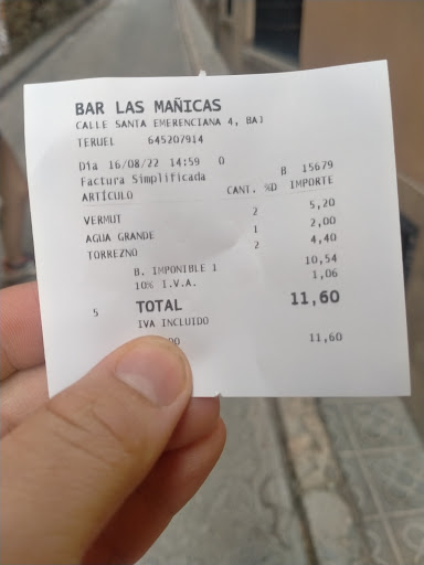 Íbamos a comer allí y decidimos pagar la cuenta e irnos. La camarera era relativamente simpática pero se notaba la falta de profesionalidad muchísimo. 11 mesas llenas y tardaron 15min en atendernos una vez sentados, otros tantos en limpiar la mesa y traernos las bebidas (que cuando nos trajo se olvidó de traer la carta que habíamos pedido) La tapa para 4€ y pico en Teruel 8 trozos contados de torrezno (se supone que eran 2 torreznos grandes cortados). En fin, una tristeza la hostelería desprofesionalizada. Estaba toda la zona llena de gente buscando dónde comer y el local con la gente tardando HORAS en comer por falta de velocidad. Un local que podría haber mínimo doblado o triplicado los servicios en mesa. Pero con camareras sin formar, temporales y a las que pagarán menos de 1000€... Pues no se puede....