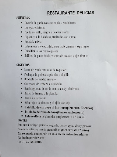 Read moreNo, no ha sido hoy el día (25/03/2012) más afortunado del historial del Restaurante, ni en el trato personal, ni en la cocina. Os cuento. Con motivo de un torneo de basket de niñas, nos reunimos en Teruel para la ocasión padres y madres de 4 provincias. Tras el torneo nos dirigimos al Restaurante Las Delicias unas 80 personas (con reserva previa, claro está), una vez allí nos encontramos con reticencias porque 5 de las niñas-jugadoras ya habían comido antes (un bocata tras el partido), y como no iban a comer pues que no podían ocupar asiento. Igual querrían que las atáramos a una farola en la calle mientras los papás hacíamos consumo. Ante la reiterada reticencia hubo una familia que se fue, indignada, a buscar otro local donde comer. Al final se logró que sacaran alguna silla que añadimos a las mesas correspondientes, muy a regañadientes, para que las nenas pudiesen estar con sus padres. Tema menú: una vez solucionado el "problemón" nos empezaron a tomar nota, el menú ofrecido era el siguiente: Primeros: Ensaladilla con entremeses, pimientos rellenos o fideuá; Segundos: Codillo, churrasco, dorada o bacalao. Esto con postre (comtessa y punto, además escasita) + café: 18 € por barba. Por cierto, el churrasco duro a rabiar (sería de algún dinosaurio), el bacalao, bueno pero también escasito y la ensaladilla, presumió de soltería, al no ir acompañada de los anunciados entremeses. La verdad, esperaba mucho más de este recomendado local. Espero saquen ustedes sus conclusiones. Por cierto, las nenas que "no comieron" tomaron heladitos, papitas, etc... con lo que también consumieron. Yo no se los demás 79 comensales pero, lo que es yo, no repito...