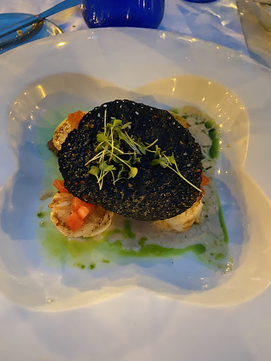 Je me suis rendu dernièrement dîné en famille dans ce restaurant, de première vue ce lieu est agréable visuellement, Je suis arrivé en voiture et peur de ne pas trouver de place en ville, car il n’y a pas de parking devant le restaurant J’ai tout de même tenté de rentrer malgré l’absence de parking, mais là, un voiturier m’a fait signe pour me dire de rentrer ! Il ont prient main de la voiture et après plusieurs manœuvres l’on garé devant l’entrée Top!, mais avant ils ont sorti d’autres voitures présentes pour prendre leurs place ?, je pense que ayant une voiture venant de Stuttgart, c’est bon pour l’image… Accueil assez sympathique, mais sans plus Nous avons obtenu une table, malgré une erreur de réservation, ils pensaient que nous devions venir la veille !!, heureusement nous avons obtenu une table extérieur en milieu de terrasse La vue sur mer est agréable, penser à venir quand il fait jour, sinon plus aucun intérêt !, forcément !