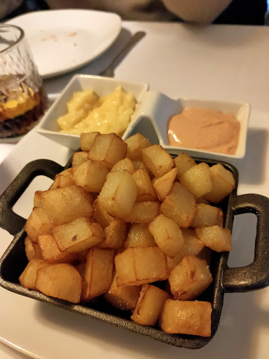 En cuanto a la comida, la calidad de los platos es excepcional. Destacamos el arroz de secreto ibérico con setas: al dente, meloso, sabroso y perfectamente equilibrado, con producto de calidad y un punto de cocción impecable. El canelón de pies de cerdo (o “caneló de peu de porc”) fue una auténtica sorpresa, muy bien ejecutado y lleno de sabor tradicional. Y lo más inesperado: los churros de parmesano, una fusión creativa que estaba absolutamente espectacular, crujientes por fuera, intensos y fundentes por dentro. He de destacar que todos aquellos platos “fritos/rebozados están en tempura, crujiente y nada aceitosa, espectacular. Aunque no tenemos fotos, son de esos platos que se quedan en la memoria.