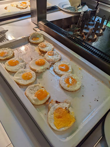 Pancakes for breakfast? Good idea but make sure to remove the first two layers of dry, wavy cardboard to get to the soft ones (that is right after the restaurant opens at 7:30). Message for the kitchen: don't prepare two trays of pancakes an hour in advance and let them sit under the lamp, hoping that they will turn out ok. They won't.