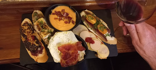 This place is a quiet atmospheric bar, lined with wood, where locals lead a quiet conversation with a friendly likeable bartender. The atmosphere alone made it a favourite spot for me and my partner. Wine and beer were very good and cheap by our standards(we live in Germany). Starting with second drink every drink comes with a tapas. We spent a lovely calm evening there soaking in the atmosphere, drinking good wine and eating tapas and in the end we paid little over 10 €. We didn’t try any of the standard dishes so we cannot judge that. Around 10 pm on some days the bar can sometimes fill with people. Still -...
