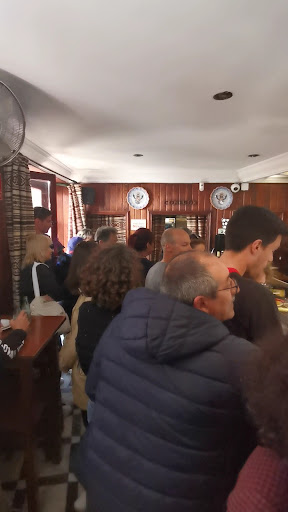 Waitress hates her job, or maybe just hates tourists, or maybe both. Two stars for the food — well, for what we were allowed to order. We ordered cava to drink and she exclaimed “CAVA?!?!?” with a disgusted look and then sped away, came back and said “we don’t have cava here”. Wtf? We ordered sparkling waters instead and she groaned. We asked for carcamusa and we were told it was sold out (we sat down right before 1pm) but then a table of Spanish people next to us ordered a tortilla española with carcamusa sauce and she brought it. So we pointed and asked to order the same thing, she begrudgingly complied and I have to say it was actually delicious. Next we asked to order some croquetas and she exclaimed similarly as before “CROQUETAS? It’s 1pm!” Am I missing something here, are croquetas only at a certain time? Then she came back and said there was a portion of them remaining and they would be out soon. Overall her tone and brusqueness with us really ruined the mood and we decided to not even attempt to order anything else. The food others were served did look good however. We don’t speak Spanish very well but we did our best and we didn’t order anything outrageous or unusual....