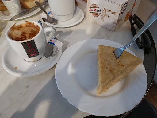 Read moreEl local es muy pequeño, con apenas un par de mesas, y tiene pinta de ser el lugar habitual de los trabajadores de la zona para tomar el café. La tortilla estaba bien, sin ser nada espectacular, y el café me ha parecido bastante bueno. El precio es bastante económico, hemos pagado 5.80€ por un café americano, un café con leche, un pincho de tortilla y unas tostadas con aceite y tomate. Sólo aceptan pagos...