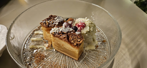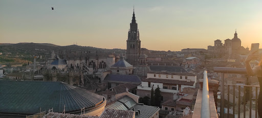 Read moreEl brownie de chocolate blanco cumplió muchísimo nuestras expectativas. El helado le encantó a mí novio, un sabor muy fresco aunque a mí no me convenció tanto. Muy bien emplatado y nos lo sirvieron bastante rápido. La única pega que podríamos ponerle era que esperábamos que tuviese un poquito más de chocolate blanco, tipo sirope o algo así. Por el precio, teniendo en cuenta lo que cuestan los postres en otros sitios de la zona, a nosotros nos mereció más la pena este postre que los que comimos en otros sitios. Incluso comparandolo con un Brownie normal que comimos en otro local de la zona, este le ganaba, pese a no ser el típico brownie de chocolate empalagoso que a mí megusta. Las vistas buenísimas y el ambiente, aunque no es tan de mí agrado porque yo soy más de aislarme, es lo típico que suele gustar, una terraza bastante cuidada con música, césped artificial, luces y gente disfrutándola. Lo malo de la zona climatizada es que solo había asientos en mesas altas (al menos ahí nos pusieron), claro esto para algunas personas puede ser algo negativo. El servicio fue genial, nosotros fuimos un miércoles de enero por la noche y estaba muy tranquilo de gente (algo que yo suelo buscar a sabiendas). Había dos trabajadores y el chico fue muy amable, imagino que nos lo cortó a la mitad porque le dijimos que queríamos probarlo pero no queríamos comprar dos, así que ese detalle fue muy considerado por su parte. Además, un punto muy positivo es que tenían una zona específica para fumadores. Yo no tengo experiencia en otras terrazas pero me gustó mucho ese detalle porque a mí no me gusta nada el humo y el tabaco etc. Imagino también que eso es algo positivo para la gente que fuma, en vez de tener que salir del edificio para fumar, tienes ahí una zona apartada dónde puedes hacerlo molestando lo mínimo posible. 5 estrellas porque no tengo ninguna queja real más allá de esas mini cosas que no son importantes. Vivimos en Madrid y nos hemos planteado volver a Toledo para pasar la tarde con amigos, definitivamente, volveríamos a la terraza para poder tomar algo ahí con ellos! ✨...