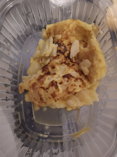 Read moreAmbiente familiar, pido la carta me dice el camarero escanea el código QR, y las personas que no lo tenemos? Me manda fuera a mirar la carta una cosa que pedí no tenía tarda una eternidad en cojer un pedido de dos simples raciones, la comida tarda, sinceramente el camarero seco y borde, se salva la comida que estaba muy bien y el ambiente familiar de la gente, pero bueno pedí copia de mi tiket , y la comida buena sinceramente es un bar de paso, porque la comida no está tan buena 8€ por una ensaladilla rusa que llevaba ketchup, me parece un timo, el bocadillo de calamares con olor raro ni el perro lo probó, dos pinchos de tortilla que la foto ni se le parece si pago a 5€ el pincho de tortilla espero calidad y cantidad no lo que se le sirvió, escaso muy escaso, y encima el camarero se equivocó con la cuenta, sino llegó a pedir el tiket me tuvo que devolver, y yo no volveré, después de la última visita, mala calidad de los alimentos,mal servicio y encima me quiso cobrar de más ,no lo recomiendo, dejo la foto del pincho de tortilla de 5€ que...