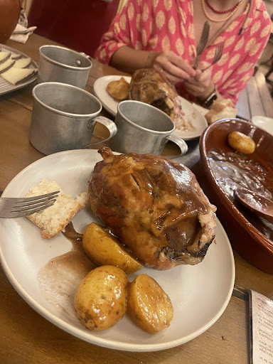 Read moreVoy a romper una lanza a favor de este restaurante temático porque me parece exagerada la mala nota media que tiene, de hecho a mí me desconcertó y pensé que había sido un error reservar allí, adelanto que no me arrepentí en absoluto. El ambiente muy apropiado, decorado con mucho detalles que te hacen sentir que has viajado al pasado. Mientras comes actúan en el centro tres actores en plan comedia que consiguen sacarte una sonrisa, y el final tiene mucha acción y te hace sentir en un plato de rodaje. Sobre esto decir que hay gente que considera que es ridícula por el humor y las canciones que utilizan que son inapropiadas para la época que representan. Me parece muy duro juzgarlo así porque lo que se pretende claramente es que la gente se una a ellos y pase un buen rato, el enfoque no es hacerlo realista, si esa es la expectativa no vayas. La comida me pareció muy decente, nada fuera de lo común pero bien de cantidad, es verdad que te lo ponen para compartir, en mi caso entre 4, pero es abundante, mucho queso,embutido y ensalada en los entrantes, yo no me pude terminar mi codillo. De postre una torrija de brioche, además de vino, agua, limonada, café y un chupito de limóncello. Otro punto a tener en cuenta, si es verdad que el servicio va muy rápido, pero como trabajador de la hostelería me parecieron buenos profesionales, incluso atendiendo peticiones a pesar de la carga de trabajo, estaba lleno cuando fui. En la cena es justificable porque muchas personas como era mi caso asistimos después al sueño de Toledo y si no fuera así no llegaríamos a tiempo. Pero si eres de los que no te gustan las prisas mejor no vayas. En definitiva a mí me parece una muy buena opción para nutrirse y seguir disfrutando del espectáculo que es Puy du Fou, que no os asuste tanto comentario negativo. Y si vais con niños se...