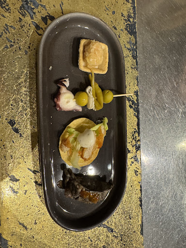 Read moreSe compone por una degustación de 60€ por persona sin incluir bebidas. Máximo 8 personas por lo cual es muy íntimo. El chef Diego es muy amable y diligente. Los platos estuvieron bastante buenos, algunos más raros que otros en sus combinaciones pero bastante bueno. Comenzamos con un plato de 4 pequeñas entradas: una crocante, una de marisco, otra de pulpo y un gyoza. Los mejores fueron la gyoza y el pulpo. Luego unas croquetas de chistorra que estaban muy buenas. Luego un timbal de perdiz que recomendaban comerlo en combinación de la uva pasa envinada y el queso de cabra con centro de naranja y si, solo estaba bien pero tomando un bocado de todo estuvo estupendo. Luego siguió un huevo escalfado con alcachofa y crema de boletus, estaba bastante bien aunque para mi gusto se quedó a poquito corto. Luego vino el principal de pescado, el salmón estaba perfecto, venía con un chutnik de mango que era el toque perfecto, pero era muy poco y no daba para todo el plato y el salmón por si solo era soso porque el Alga frita no aportaba ningún sabor. Luego el plato principal de carne, que era un patón, que a mi particularme no me gustó (lo único del menú que sacaría). De postre, fue el cierre perfecto, para mi el mejor plato, increíble, torrijas con helado de queso, no hay palabras para este postre. Luego Diego nos dio un tour por la casa, al estudio y a la cueva en el sótano y nos contó muchas historias. Lo único que unidas mejoraría es un poco las reservas, la cita es a las 9, nosotros tuvimos que salirnos de un sitio y correr porque casi no llegábamos a tiempo, llegamos a las 9:01 y nos sentamos a...