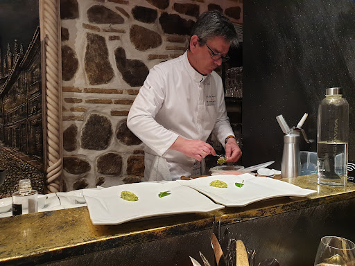 A rather unique chefs table which only seats 9 people with no exceptions. There are no other tables available. We were the only people there today (4) and whilst this meant less people to engage with, the chef and front of house staff were so friendly and engaging. The experience was lovely. We have two kids (13 and 10) and they enjoyed it. Remarkable value compared to similar experiences in major cities. Cool building (has 5 hotel rooms) in a great location for exploring the lovely old town of Toledo. Great wine, reasonably priced. The menu doesn’t change often - more a seasonal thing… so a one off experience during a trip....