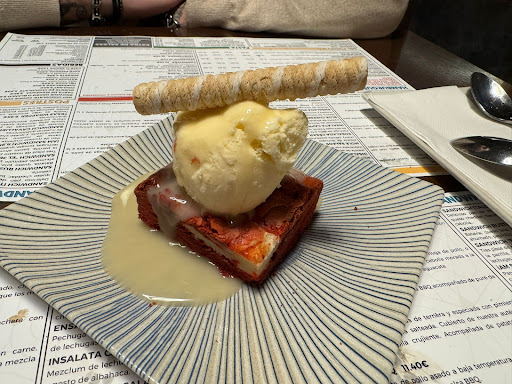 De postre pedimos un BROWNIE DE RED VELTET ( en la carta no sale, solo pone brownie negro/blanco, pero el camarero nos dijo que había red velvet), estaba BUENISISMO.