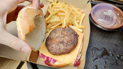 En lugares como éste, no hay que comer aquí. Pedimos sendas hamburguesas, pollo y carne. El pan pasado. No era fresco. Se desmigaba solo, pasado, duro. La carne... En fin... La hamburguesa era una cuarta parte del pan. Enana. Minúscula. Empecé a comer... Comía, mordía, pero nunca llegaba a la carne. Abría el pan... Ahí está la hamburguesa, a ver si al próximo mordisco pillo chicha! Pues no. Solo las dos últimas mordidas pillaron carne. El pan de desmenuzaba solo. Las patatas fritas tienen el nombre, pero chuchurridas que daban pena verlas. Y todo a precio de lujo. Por supuesto. Hacer cola. Esperar. La gente empujando y respirando en tu cogote. Con prisas, se te adelantaban en la fila. Esperar... Que buenos tiempos con el coronavirus cuando la gente respetaba la distancia y el espacio personal!! La gente no tiene ni un ápice de educación, pero si mucho, mucho miedo! Y después de pedir.... Esperar el mismo tiempo como en la cola. Mucha gente sirviendo, pero cero movimiento. Nada. No están preparados nada.