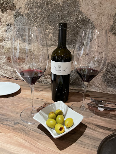 Read moreWhen we arrive we immediately like the mix of lights against the towering rock and glass walls. There is an atrium in the middle with Christmas tree wreaths hanging from the glass sky light ceiling. We are seated in a cozy rock alcove. Wine glasses paired with our wine choice were so large but delicate. A normal pour looked small. Glad we had the whole bottle so we didn’t feel shorted! Complementary pate served with toast points was so good we requested more bread so we could finish it. My husband said the bread is the best bread he has ever had. We start with a shared assorted appetizer. What arrives to the table is now the most creative and tasteful of all we’ve had in Spain. It had ahi tuna tartare, pulled pork crunch roll, croquettes that melted and marinated venison filets that were so tender. So fun to try so many things! Then we had a Cesar salad with crunchy deer. The deer was crunchy but so tender. Salad was excellent. Lastly we had Golden Cannellone stuffed with three meats. The waiter pours a peppermint broth at table and it is delicious. It is so “golden” and we are so thrilled by the surprise of it, we dig in before taking a picture. The restaurant was by far the best place we’ve had in our Spain tours! We are going to break our rule and we’re going to repeat tomorrow!More great things to try on the menu! A Must...