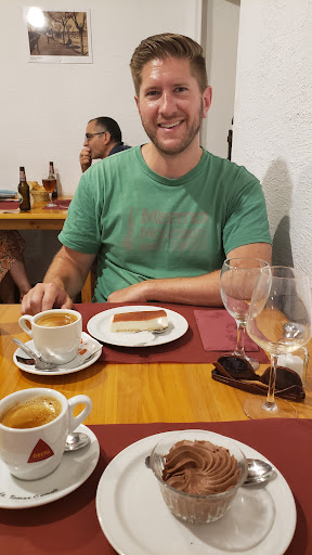 Dessert, included in the menú del día, was just as bad. I ordered the so-called house specialty, crema de almendras, and my wife had natilla de chocolate. What we were served was the texture of a warm, melted milkshake. Definitely not the creamy custards we expected.