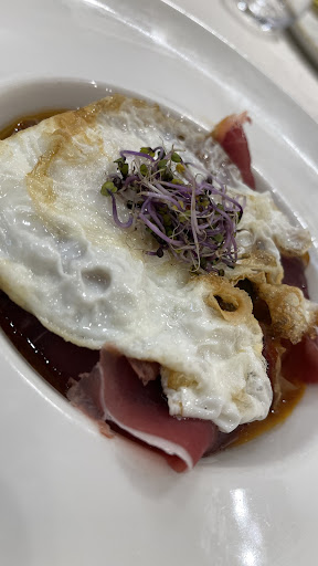 Read moreAunque por fuera no lo parezca, por dentro es una joya. Entras y tienen su zona de bar cafeteria, separada del restaurante. El baño con la cerámica me encantó. Un plus que nos atendieran a las 14.30 para comer habiendo llamado el mismo día. Quizás por un descuido, no lo sé pero empezamos con buen gusto y nos fuimos un poco decepcionados. Ante todo el camarero de sala es brillante, detallista, profesional,de los que no quedan, no da a basto. Al igual que el encargado que esta pendiente de todo. Sin embargo tuve la sensación de que estorbabamos que necesitaban nuestra mesa, que todo el servicio tenia que ser rapidísimo, que estas con el último bocado y ya te estan trayendo el postre. La comida muy buena precio calidad, vino habla de, 2 menús y te sirve un picoteo. Hay gran variedad para un menú de 15 euros, eso hay que apreciarlo. Todo estaba rico, quizas a mi el alioli del conejo me sobraba y la miel de la tarta de manzana no pintaba mucho pero en general respecto a la cocina un 9. Por supuesto recomiendo este sitio, y lo disfruté pero por alguna razón hubo demasiada prisa en que llegaramos al postre y luego nos costó conseguir la cuenta....