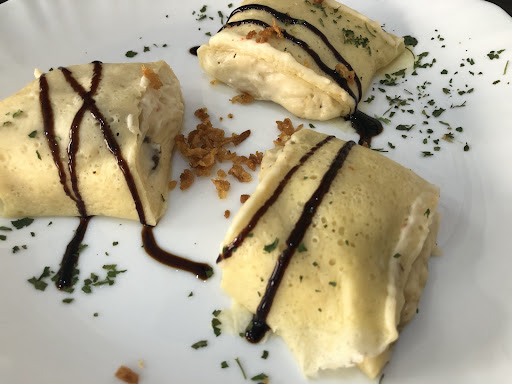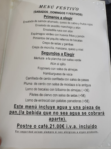 Read moreComimos de menú, muy sencillo, quizás demasiado por 10,90€ y demasiados segundos con suplemento de 3€ lo que pasa a ser un menú caro para lo que se ofrece. El servicio malo, despreocupado, tardan en pedir la bebida y la comanda, y luego te dejan los plato ya terminados después de haber ya pedido el postre, iban por el comedor como títere sin cabeza. La ensalada muy normal un poco de atún y pimiento asado, sin ninguna gracia, los crepes de gambones y setas todo bien triturado solo se intuyen algunos trozos de setas, bastante sosos la verdad. El solomillo con salsa de queso azul, la carne bien pero la salsa era nata y ya, no sabia nada a queso azul, la pechuga con salsa de setas estaba mejor, el acompañamiento de ambos platos eran unas patatas bastante sosas. De postre pedimos tarta de zanahoria, te sirven un trozo ridículo con un buen pegote de nata en spray, de zanahoria tenía poco y el bizcocho inferior estaba tan empapado que era hasta desagradable de comer, la panna cota de chocolate mal elaborada ya que no lo era, más bien parecía un intento de mousse muy untuosa a la que le faltaba el aire. Lo peor la botella de agua que nos trajeron estaba sucísima por fuera nos dejó la mano negra. No lo recomiendo, hay sitios...
