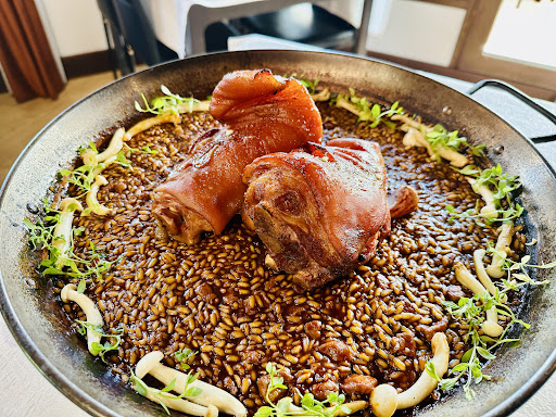 We chose to start with croquetas de jamon and anchovies on brioche with smoked butter- absolutely delicious. Before that we were served some very tasty bread and a complimentary pre-starter. The main event was a shared dish of slow-cooked pork knuckle with the restaurant’s signature rice with mushrooms. The taste was out of this world (and a huge portion!).