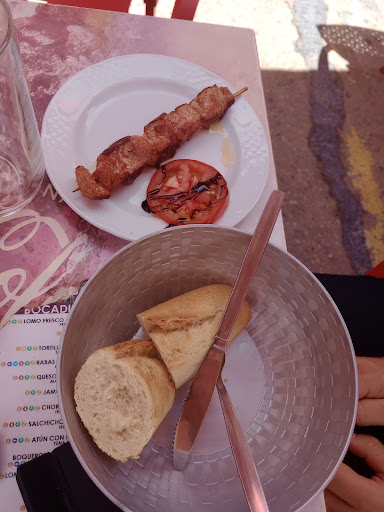 Nice local place beside our hotel. Castilla La Mancha prices so 3.5€ for a jarra, don't ask for a pinta. You do get a tasty tapa, if they forget, remind them which we had to do a couple of times. My favourite was the olives, they were big, juicy & delicious. We also ate here on the first night, I really enjoyed the donut de pollo, it's like a chicken burger but shaped like a donut, not served in one. My boyfriend had a nice lomo adobado with tomato bocadillo & we shared some potatoes with garlic mayo too. He also tried a pincho de moreno another day which he enjoyed. Definitely go if you're in the area, we went every day as it reminded me of when we lived in Castilla La Mancha, La Comida manchega es la...
