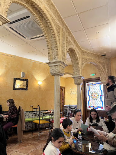 Read moreEmpezaré diciendo que el lugar estéticamente está genial. Al tratarse de una tetería obviamente está ambientado en la cultura árabe y su interior es precioso. El local está muy limpio, ofrece wifi gratis a los clientes, prensa y buena playlist de "hilo musical". En cuanto a las chicas que trabajan allí, a cada cual más maja. Son agradables, activas y muy atentas: se preocupan por el cliente y ofrecen un buen servicio. Además de las "cachimbas" de agua que allí puedes tomar, o té natural de muchos sabores, (que puedes comprar al peso) refrescos, tapas elaboradas, cañas, etc., tienen unas tostadas en pan de mollete para morirse, a muy buen precio, y más si se piden con la oferta del desayuno. Si eres cliente habitual, te hacen una tarjetita, en la que van sellando tus desayunos y el décimo te invitan sin restricciones. He de añadir que al estar cercana a la Escuela de Arte Toledo, es frecuentado por profes y alumnos de ésta, haciendo del local un espacio distinguido y con muy buen rollo. Finalmente, y por poner un -pero-, es que cobran un pequeño suplemento por atender en terraza, pero se lo merecen por lo bien que lo hacen. Chapeau!...