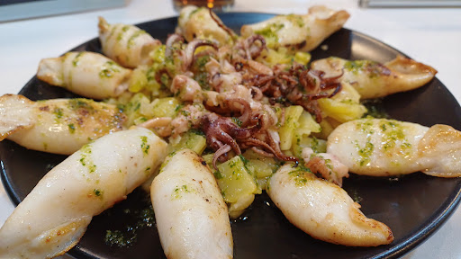 La verdad es salí muy contento, el plato en cuestión se trataba de unos chipirones a la plancha con patatas, los chipirones con mucho sabor y muy tiernos, acompañados de unas patatas en cuadrados y una salsa con hierbas muy agradable. El local es muy agradable, luminoso y tranquilo con una musica de ambiente a un volumen adecuado. Volveré.... Y una semana despues he vuelto acompañado para probar mas platos.. De entrantes unos nachos (que no me dieron tiempo a sacar la foto) que estban muy rucos, con salsa de queso, guacamole, frijoles y jalapeños. Seguimos con unos tacos, que aunque en la carta marca tres unidades. Para que fuesen pares, nos sacaron cuatro, estos iban acompañados de tres salsas, alguna de ellas con un punto picante. Y de platos fuertes repetí los chipirones y otros comieron pescado frito. Los chipirones ya os comenté, el pescado frito, según dos personas que lo habian probado en otros sitios, exquisito. Finalmente los postres, que mejor guinda para una buena comida que unos postres elaborados. Una tarta de tres leches que superó las expectativas, un coulan con elado de mango espectacular y una tarta de chocolate con baileys deliciosa. Finalmente tras los cafés, nos sirvieron unos chupitos diferentes en presentación y sabor que fue el remate de una...