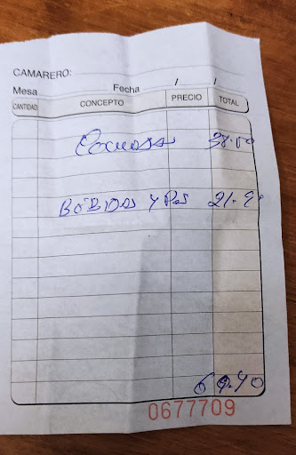 Read moreFuimos el sábado 19 de abril de 2025 y tanto el servicio, la comida y el ambiente no fueron buenos. El jefe es el único que coge las comandas acompañado de una camarera (supongo que porque él estaba con un brazo en cabestrillo) que tomaba nota porque NO TIENEN CARTA, cosa que es ILEGAL. Les pedimos la carta hasta en 5 veces y nos decían que nos la traían en seguida, pero hacían tiempo hasta que nos tocaba y el jefe nos "cantó" la carta, le pregunté por los alérgenos y nos decía que estaban perdidas, aunque no vimos cartas en ninguna mesa, le pregunté por los precios y nos dijo que 10€ cada plato, pero no nos trajo la carta en ningún momento, probablemente porque van muchos extranjeros y quizás varíe el precio con este tipo de clientes. La comida llegó y de los 4 platos 3 fueron secreto y 1 cachopo (pequeño, parecía san jacobo) y todos llegaron fríos. También pedimos un plato de croquetas que nunca llegaron. Las camareras estaban muy estresadas y esto generaba un ambiente enrarecido. Tardamos en ser atendidos más de 50 minutos, ya que al solo tomar la comanda el jefe, según orden de llegada iban atendiendo a las mesas y hasta que no salían los platos de una mesa, no atendían a la siguiente. Para pagar, pedimos la cuenta hasta en 3 ocasiones y después de una espera de 25 minutos, me tuve que levantar y la camarera nerviosa tuvo que llamar hasta 2 veces al jefe para que me cobrara, ya que el jefe también es el único que cobra en este establecimiento. La experiencia para almorzar 4 personas en la fecha indicada fue nefasta, hasta tal punto que nos planteamos irnos cuando llevábamos 30 minutos con las bebidas en la mesa y no nos cogían la comanda. Además, nos sentíamos mal por exigir a las camareras ciertas cosas cuando claramente ellas no tenían la culpa de nada, pero nosotros tampoco y esto nos generó mal estar. En un futuro, no volvería a este...