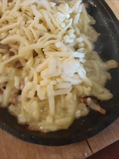 La gran revelación fue el molcajete: una piedra ardiente con carne asada (aunque también puedes elegir chorizo o setas), rebosante de queso fundido. Como dirían en México: un chingo de queso. El fondo crea una costra dorada que es puro vicio. Viene acompañado con seis tortillas para armar a tu gusto. Eso sí, si le pusieran un poco más de carnita asada sería perfecto… porque sinceramente, nunca es suficiente. Y si lo hubiéramos combinado con las cebollitas taqueras del principio, habría sido una auténtica locura de sabor.