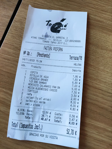 Hemos vuelto hoy 6/10/23 y sorpresa todas las mesas de la terraza a las 20:40 vacías y reservadas al 60%. Te invitan a pasar al interior aún con plazas libres en la zona del restaurante. Nos dan el código QR para ver la carta y pedimos unas cerveza mientras vemos la carta Lo que sale es la carta del restaurante. Me levanto me acerco a la barra y le digo que fuera para tomar unas cervezas y u. Par de tapas me indican al interior y me sale la carta del restaurante, me ayudan para ver la carta de las tapas. Ya no hay cartas en los locales? Me dicen q esto es lo q tienen, lo curioso es que también en la web donde está alojada la carta también hay un apartado “fuera de carta” Pedimos u par de tapas luego otras cervezas y otro par de tapas. La ensaladilla de gambas y “mini” las croquetas ibéricas (Jamón). Nos llega ensaladilla de pulpo también en la carta lo rechazamos y en breve tiempo vuelven con la de gambas. Pido montadito de pan bao con calamares “no aparece en ninguna parte de la carta que lleve lechuga y cebolla caramelizada. Solo dos redondelas de calamar y un par trozos de tentáculos 5,50€. A mis 66 años he comido muchos y diferentes montaditos de calamares en toda el territorio español, y nunca me he encontrado con este timo. La otra tapa ha sido de salmorejo, comestible no más nada sorprendente, más bien aburrido. Pedimos la cuenta y premio 3,00€ de pan y picos, repaso la carta y no aparece este concepto en toda su extencion por lo que pido hablar con el responsable del salón. Aparece un señor me pregunta y una vez expuesto que una tapa debe de venir acompañada de pan o pico y salvo que se indique en la carta no pueden cobrar esto que supone el 12,50% de la facturación su única respuesta es que si quiero que me quiten los 3,00 me lo hace. A lo que le contesto que ya estoy lo suficiente incómodo que tener que informales de un error que está cometiendo y q si no lo practicará se ahorraría tiempo y malos entendidos. Se calla me modifica el Tiket le pago con tarjeta y me da el tiket que está en la foto pendiente de pago cuando ya está pagado. Que manera de perder clientes, es la tercera vez que voy y siempre me pareció correcto, como en mi primera valoración. Que fácil es mantener clientela en ve de perderla por la aficion de cobrar lo deben. Ha pasado de ser un local recomendable a no...