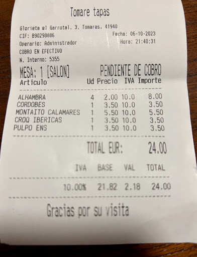 Hemos vuelto hoy 6/10/23 y sorpresa todas las mesas de la terraza a las 20:40 vacías y reservadas al 60%. Te invitan a pasar al interior aún con plazas libres en la zona del restaurante. Nos dan el código QR para ver la carta y pedimos unas cerveza mientras vemos la carta Lo que sale es la carta del restaurante. Me levanto me acerco a la barra y le digo que fuera para tomar unas cervezas y u. Par de tapas me indican al interior y me sale la carta del restaurante, me ayudan para ver la carta de las tapas. Ya no hay cartas en los locales? Me dicen q esto es lo q tienen, lo curioso es que también en la web donde está alojada la carta también hay un apartado “fuera de carta” Pedimos u par de tapas luego otras cervezas y otro par de tapas. La ensaladilla de gambas y “mini” las croquetas ibéricas (Jamón). Nos llega ensaladilla de pulpo también en la carta lo rechazamos y en breve tiempo vuelven con la de gambas. Pido montadito de pan bao con calamares “no aparece en ninguna parte de la carta que lleve lechuga y cebolla caramelizada. Solo dos redondelas de calamar y un par trozos de tentáculos 5,50€. A mis 66 años he comido muchos y diferentes montaditos de calamares en toda el territorio español, y nunca me he encontrado con este timo. La otra tapa ha sido de salmorejo, comestible no más nada sorprendente, más bien aburrido. Pedimos la cuenta y premio 3,00€ de pan y picos, repaso la carta y no aparece este concepto en toda su extencion por lo que pido hablar con el responsable del salón. Aparece un señor me pregunta y una vez expuesto que una tapa debe de venir acompañada de pan o pico y salvo que se indique en la carta no pueden cobrar esto que supone el 12,50% de la facturación su única respuesta es que si quiero que me quiten los 3,00 me lo hace. A lo que le contesto que ya estoy lo suficiente incómodo que tener que informales de un error que está cometiendo y q si no lo practicará se ahorraría tiempo y malos entendidos. Se calla me modifica el Tiket le pago con tarjeta y me da el tiket que está en la foto pendiente de pago cuando ya está pagado. Que manera de perder clientes, es la tercera vez que voy y siempre me pareció correcto, como en mi primera valoración. Que fácil es mantener clientela en ve de perderla por la aficion de cobrar lo deben. Ha pasado de ser un local recomendable a no...