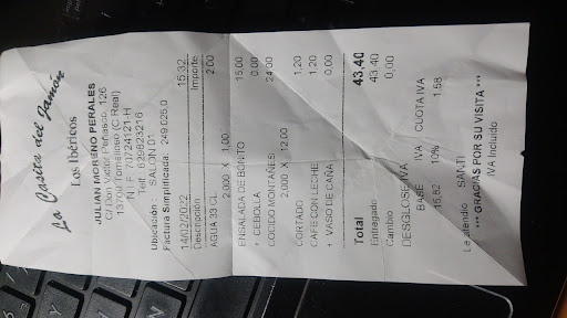 Un auténtico timo. cuidado con comer en este lugar sino quieres que te tomen el pelo. Nunca recomendaré comer en este lugar. Hoy hemos ido a comer a La Casita del Jamón y nunca jamás se me ocurriría volver. Pedimos ensalada con tomate, cebolla y atún, estaba presentable, precio 15 eurazos. De segundo nos ofrecieron cocido montañés,,, en que hora. Nos han traído dos platos de barro con algo que se intuía, totalmente aguado, ojo... a 12 eurazos cada plato, dos platos 24 euros... Impresentable, era agua con color marrón, un trozo de chorizo y listo. Evidentemente no lo hemos comido, era como lo que se queda al final de la olla después de sacar del Guiso todas las alubias y resto de ingredientes,, lo peor,,,, se lo decimos al camarero y se calla, y nos contesta, después de pensar un poco, que esta bien saberlo. . Pedimos postres y no había nada casero,,,, menos mal. Total la broma, 43,40 euros, incluye dos cafés, pan y dos aguas. Que no os engañen,,, ni entrar... En la esquina hay otro restaurante al que nunca he entrado, pero por...