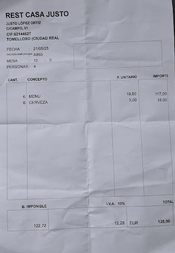 Hoy visité este restaurante con un grupo de seis personas, y la experiencia general resultó ser bastante decepcionante, particularmente en lo que respecta a la claridad de los precios y la calidad de la comida. La principal fuente de nuestra frustración fue el precio del menú. Al no estar el coste visible en ningún lugar, asumimos un precio estándar para un menú del día en la zon, es decir unos 15 €. Sin embargo, nuestra sorpresa llegó al recibir la cuenta: los 19,50 € por persona que esperábamos se dispararon a 22,50 € por comensal. La razón fue que las seis cervezas que habíamos pedido (a 3 € cada una, sumando un total de 18 €) se cobraron aparte. Al preguntar, nos informaron que las bebidas no estaban incluidas, a pesar de que solo se nos había puesto una botella de agua grande para seis personas y porque la pedimos junto con las cervezas. La explicación adicional fue que se "compensaba" con cuatro cafés que no se nos habían cobrado de los seis menús. Esta falta de transparencia desde el inicio generó una fuerte sensación de sentirnos estafados. En cuanto a la comida, los primeros platos ofrecían opciones como macarrones, lasaña boloñesa, cogollos con gambas, sopa de picadillo, lentejas y judías verdes con jamón. Honestamente, para un menú que terminó costando 22,50 € por persona, estos primeros platos resultaron un tanto cutres y no estaban en absoluto a la altura del precio. Personalmente, probé la sopa de picadillo y la encontré salada, sin nada destacable. Los segundos platos, con opciones de carne y pescado, tampoco mejoraron la impresión. Opté por la fritura de pescado, que consistió en unos ocho boquerones fritos y un par de pescadillas pequeñas. Estaba correcto, pero de nuevo, nada memorable. La opinión general entre mis compañeros fue similar: la comida era aceptable, pero nadie quedó realmente impresionado o con ganas de repetir. Para el postre, pedí tarta de queso, que claramente no era casera, lo que reforzó la percepción de una comida de calidad media con precio de alto copete. En resumen, la falta de claridad en el precio del menú desde el principio, sumado a unos primeros platos que se sienten básicos para el coste final y una comida que, si bien no era mala, tampoco destacaba en absoluto, dejó una impresión general de una experiencia que no justificó el precio final. En nuestro caso, un grupo de profesores que celebraba un curso académico casi completado, fue que no volveremos la mayoría. Para mí, que soy de la localidad de Tomelloso, pues un poco de vergüenza, ya que había gente de otros sitios y me hubiera gustado que terminaran más contentos y con una buena impresión. No se me...