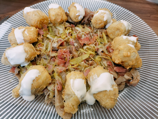 Read moreLamentable. Parece que en esta ciudad no se estila escribir una mala crítica, pero no se puede calificar de bueno algo que es pésimo, además de caro. Cenamos unos nachos (de bolsa con mayonesa de aguacate de bote insipida, 10 eurazos), una ensalada volcán (que lleva queso y foie, traducido a un taco de paté y un trozo de rulo de queso de cabra más duro que un pantalón de pana en agosto, totalmente incomible, no se podía ni partir con el cuchillo) y una cazuela de gulas con bacalao (lo único medio pasable, pero aún así más salado que el mar muerto y aún así no tenía ni gracia). Total: 50 salmones (a 25 euros por persona) por salir del restaurante famélicos y mal...