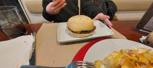 Read moreJusto acabamos de comer en este sitio. Veníamos a este sitio viendo una carta interesante a precios bastante económicos, cosa que nos hizo decantarnos por esta opción. Sin embargo, al ser las fiestas locales, el camarero nos comentó que la carta era reducida (algo entendible). La carta era bastante básica, dos hamburguesas y cuatro platos combinados con bebida y postre. Claro que uno de los problemas es que los precios de los platos de esta carta especial no se ajustaban a los precios que habíamos visto por Internet, puesto que por dos platos combinados, uno de croquetas y otro de lomo (ninguno de los dos productos eran espectaculares), dos huevos y patatas congeladas pagamos 36€ (18 por plato). El precio incluía una bebida y un postre, con la pega de que si no te gusta la tarta de queso, no hay otra opción que una tarrina de helado o un café. Todo demasiado básico para mi gusto, vaya. La hamburguesa por otro lado, espectacular. Fueron 20€ en menú pero estaban justificados.