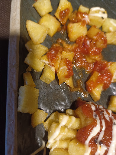 Read moreFatal experiencia, la primera vez que vamos y han tardado 40 minutos en traer la carta, 30 minutos mas para que nos tomaran nota, por no comentar los precios super altos. Con decirte que unas bravas valen 9€ te lo digo todo. De hecho adjunto una foto de ellas. Porque es de risa. Si pretendes comer rápido o normal directamente no es tu sitio no te hacen ni caso. La organización de la sala se basa en que solo hay una chica que toma nota y la otra que sirve, por lo cual la otra mujer cuando quiere te toma nota y la otra chica da la cara por ella explicando que son dos y que si su compañera no toma nota ella no nos puede atender, la verdad que la atención tant decepcionante que no hay palabras para ello. Pedimos 4 veces que nos hicieran el entrecot y nos los devolvieron...