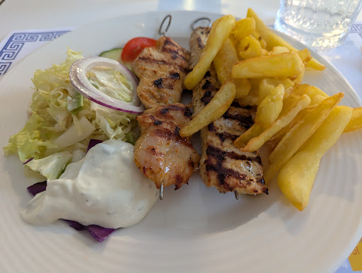 Having read so many rave reviews about this place I thought it had to be the place to take my guests, how wrong was I! We had booked an inside table to avoid the flies but a/c wasn't working so it was suggested we sit outside. The food was at best bland and the bit of side salad was limp and uninviting and most certainly vastly over priced. However, what we felt was particularly out of order was the fact that unbeknown to us when we ordered a starter each of tzatkiki at 5.90eu all that was was a dollop of yoghurt on a plate with an olive on the middle and nothing to eat it with, you had to order pitta bread as well at 2.50eu each making a dollop of yoghurt and a pitta bread 8.40eu. Not knowing this we asked for an extra pitta each, who knowingly pays 10eu for bread, it should be pointed out when you order that pitta bread is not included and costs more or the plate should at least come with a spoon so you...