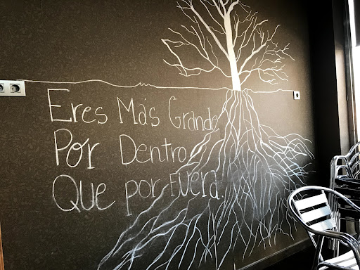 What I like best in this coffee shop are the positive written-in-the-wall messages that clients can read. 'Está prohibido rendirse' is probably my favourite one that I would traslate as 'it isn't allowed to give up'. From time to time messages are replaced...