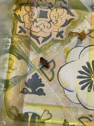 Cuando he encontrado la primera en la ensalada, he seguido comiendo del resto de cosas pensando que lo de la ensalada sería algo puntual, pero esta segunda estaba en el rollito y bien tostada. Un auténtico asco.