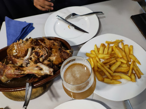 Read moreAyer mi señora y yo que pasábamos unos días por esas interesantes tierras de Castilla_León nos animamos a acudir a este mesón, atraídos por algunas de las reseñas, el lechazo servido en tiempo, según la reserva y bueno de punto y sabor, nada que destacar sobre el que hemos comido en Sepúlveda o en Peñafiel, a excepto del precio, entiendo que todo está subiendo pero me parece excesivo el que cobren 53€ por 1/4 de lechazo, 4€ por una copa de cerveza, 3,5€ por una copa de ribera joven y 6€ por un postre, en un mesón de un pueblo aislado, en un comedor de menús diarios, sin ningún detalle de mantelería, cubertería o vajilla, para eso me lo pido en la propia capital y para remate, tras una cuenta de cien euros, no son capaces ni de invitarte a café y los chupitos, porque los pedí, ante la sorpresa de la camera que se sonrió socarrónamente como extrañada. Adjunto fotografía...