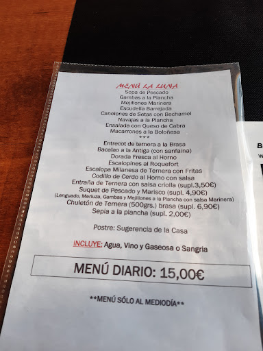 La Luna was recommended by our Google maps. It was such an excellent recommendation! The menu for lunch, even on a bank holiday, cost 15€ per person. We ordered a great variety of dishes and we were all positively surprised with every one! The cod and the seafood were of excellent quality. In addition, the staff were very attentive and helpful. For gluten-free diets, there is a great range of dishes in the menu. Regarding COVID-19 restrictions, there is no need for the COVID certificate in the terrace. Definitely...