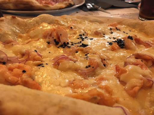 Read moreBuscas una buena pizza en horno de leña? Pues la has encontrado! Pizzas muy buenas, ingredientes frescos y una masa crujiente hecha a la leña. Nos pedimos un provolone para compartir, lo sirven con trozos de masa fina para dipear, muy bueno. Gran variedad de pizzas y si te sobra algún ingrediente te la hacen a tu gusto, también puedes poner ingredientes pero en ese caso ya te cobran. Me pedí la SALMONE con base blanca (crema de leche como la carbonara) y estaba muy buena. CUIDADO con el aceite picante!!! Pruébalo antes de ponerlo porque es fuerte! Para mi gusto la masa es demasiado fina, de sabor me recuerda a las que como en el norte de Italia, en Genova. Postre… variedad pero yo me pedí el tiramisú, muy bueno, pero el licor mató el gusto del café y del cacao, así que es más similar a una tarta con alcohol que al tiramisú clasico, hooo belli Pavesini col caffe!!! ;) mis compis se pidieron sorbete de limoncello y les gustó mucho. Lo más importante! El precio, muy buen precio y lo mejor de todo, dejando a un lado la comida, el servicio, el equipo de camareros/as espectacular, muy atentos y amables. Sin lugar a duda, repetiré! Pedí tarjeta porque de momento no reparten a domicilio, si eres de la zona, mueve tu cucu y a buscarlas!!!...