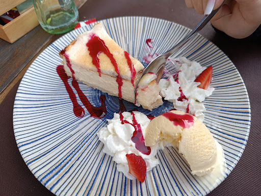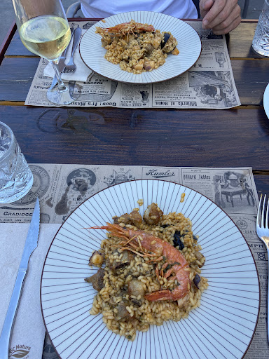 Hemos comido allí en familia. Por partes: La comida nos ha gustado, platos copiosos, bien presentados y bien elaborados. Nosotros hemos pedido dos ensaladas y croquetas, todo ello para compartir y arroz a la marinera. Una ensalada era de burrata y la otra de pollo (buenísima). Las croquetas también estaban deliciosas. Lo mejor el arroz. Al punto y muy meloso, una delicia la verdad. Precio/calidad más que correcto y un lugar totalmente recomendable. Postre pastel de queso de la casa: exquisito!