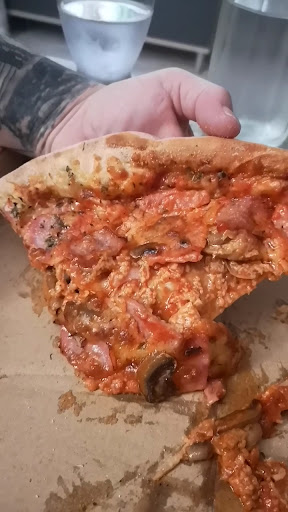 Por otro lado, cuando nos trajeron la pizza familiar que habíamos pedido (mitad atún bacon y mitad barbacoa) descubrimos que algún trabajado había decidido unilateralmente ser creativo e innovador, y echó salsa barbacoa sobre toda la pizza. Admiro su iniciativa en intentar tapar las pruebas del delito echando extra del resto de ingredientes, lamentablemente lo detecté en el primer bocado.