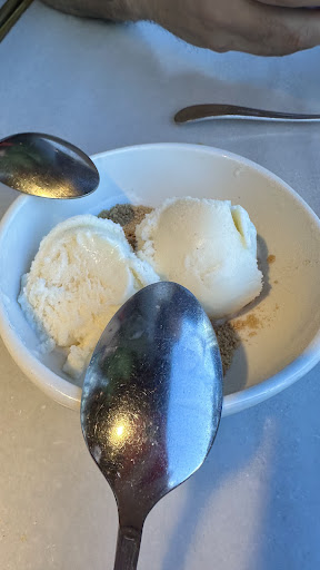 El postre... a ver, no somos de los que queremos que se nos traiga la tarta al precio de una ración, pero si pedimos una ración; por favor, que se nos traiga una ración, no la tercera parte.