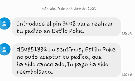 Read moreAyer realicé un pedido por su web, me dejó hacerlo sin problema hasta que pasado un rato, me mandan un sms que mi pedido ha sido cancelado... Les llsmo a ver que ocurre y me comunican que no funciona la página web de los pedidos, que si quiero hacer un pedido, lo haga por wasap pero tardará más de una hora. Al final pedí comida en otro restaurante. Tener cuidado con los pedidos de la página web! Deberían de avisar que no funcionan.... o deshabilitarlos. Respondo al propietario: No puedes comparar la caída de Instagram, Facebook etc... con un fallo de tu pagina web, ya que no está caida, si no, que el estaurante cancela el pedido, si hubiese estado caída no me deja pedir. Adjunto una foto que Demuestra que el restaurante me cancela el pedido y que tarda 25 minutos en notificarme la cancelación, no 10, como dices tú. Añado que me colgaron 2 veces cuándo llamé para preguntar por el motivo de la cancelación. Por supuesto que la atención de tu compañero, despues de colgarme, ha sido la correcta, pero no creo que sea correcto avisar media hora tarde de la cancelación de un pedido. Sabiendo que el cliente tiene la razon no entiendo su reaccion. Sintiendolo mucho ha perdido clientes...